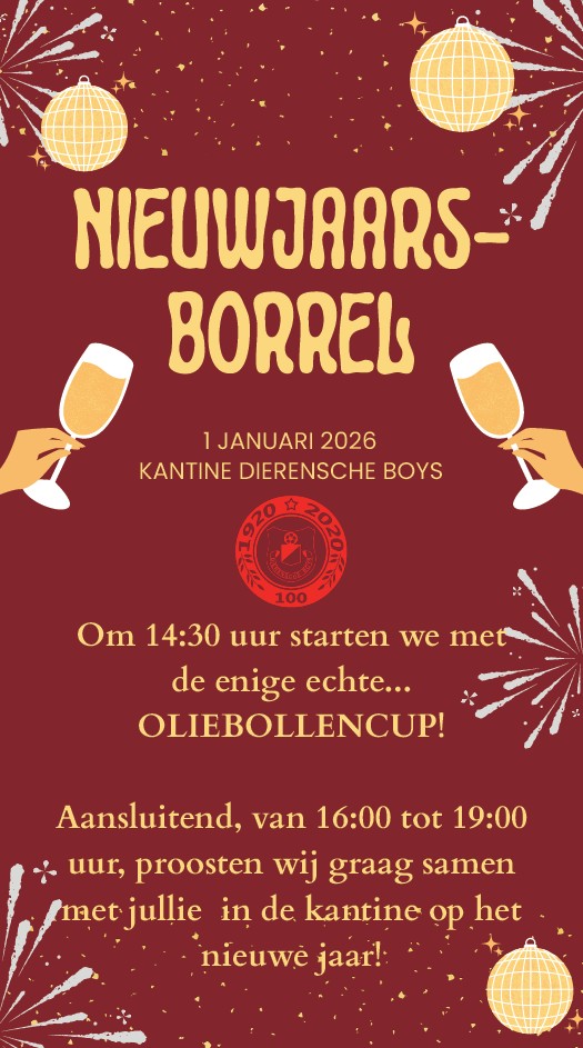 Het bestuur van Dierensche Boys wenst al haar leden, sponsors, supporters, donateurs, vrijwilligers en betrokkenen fijne feestdagen en een gezond en gelukkig nieuwjaar toe.